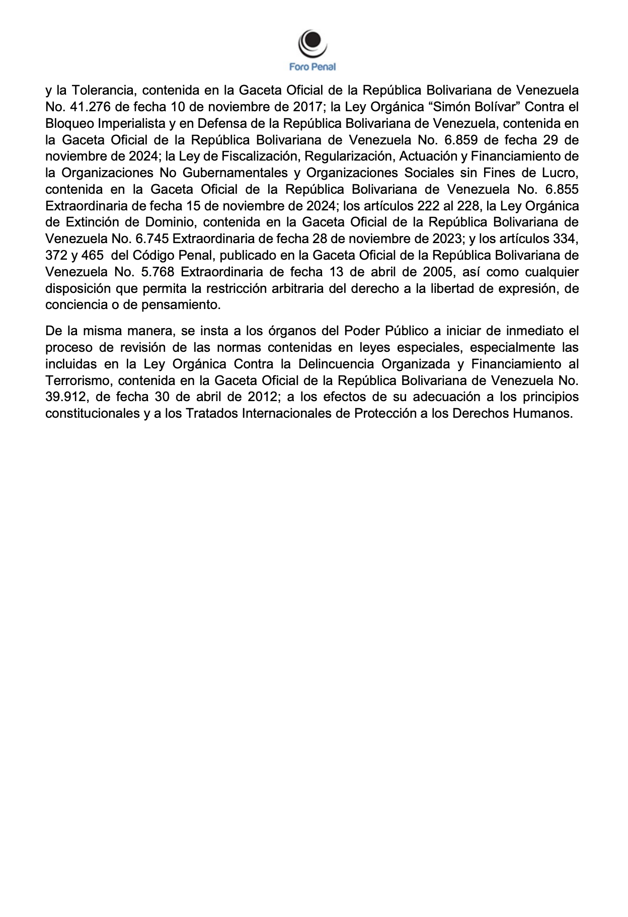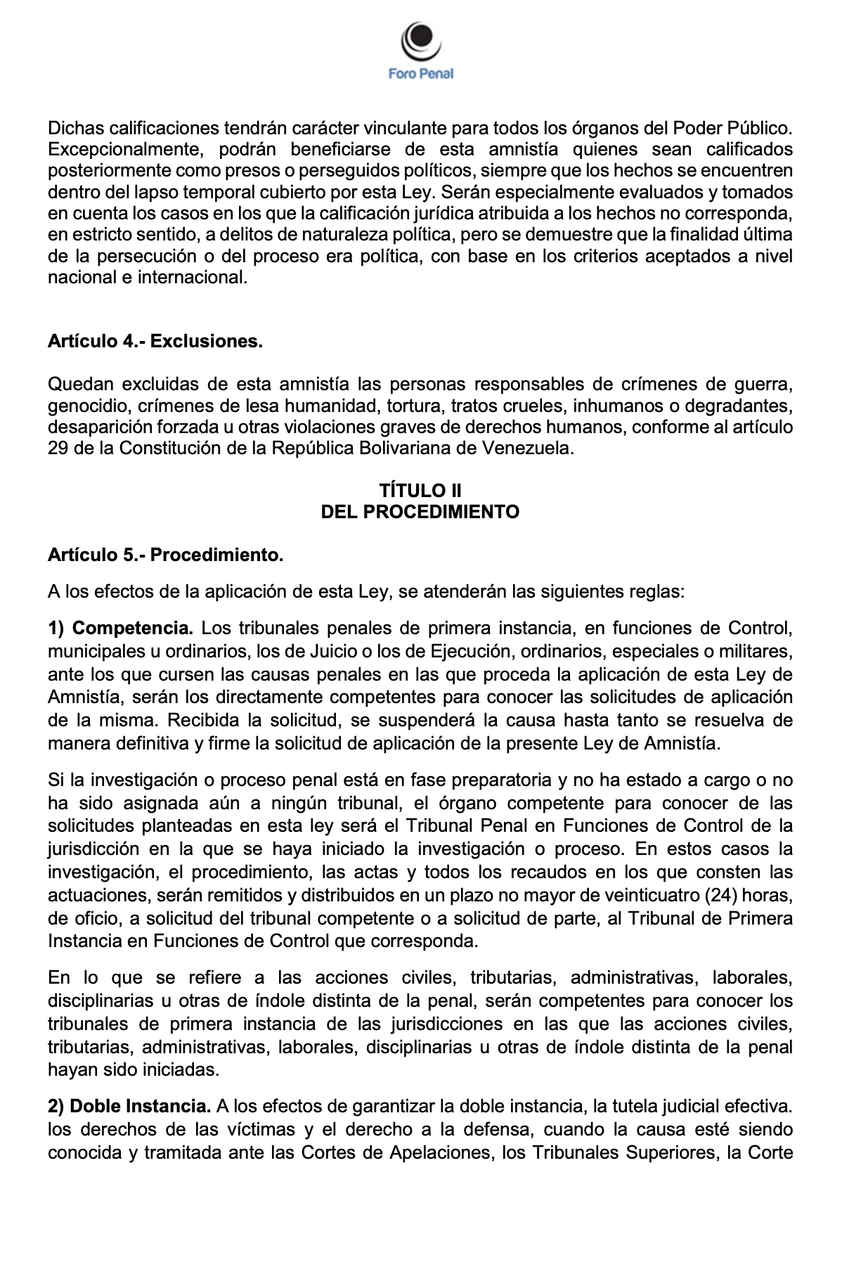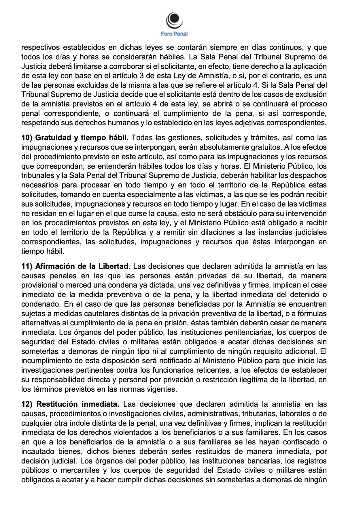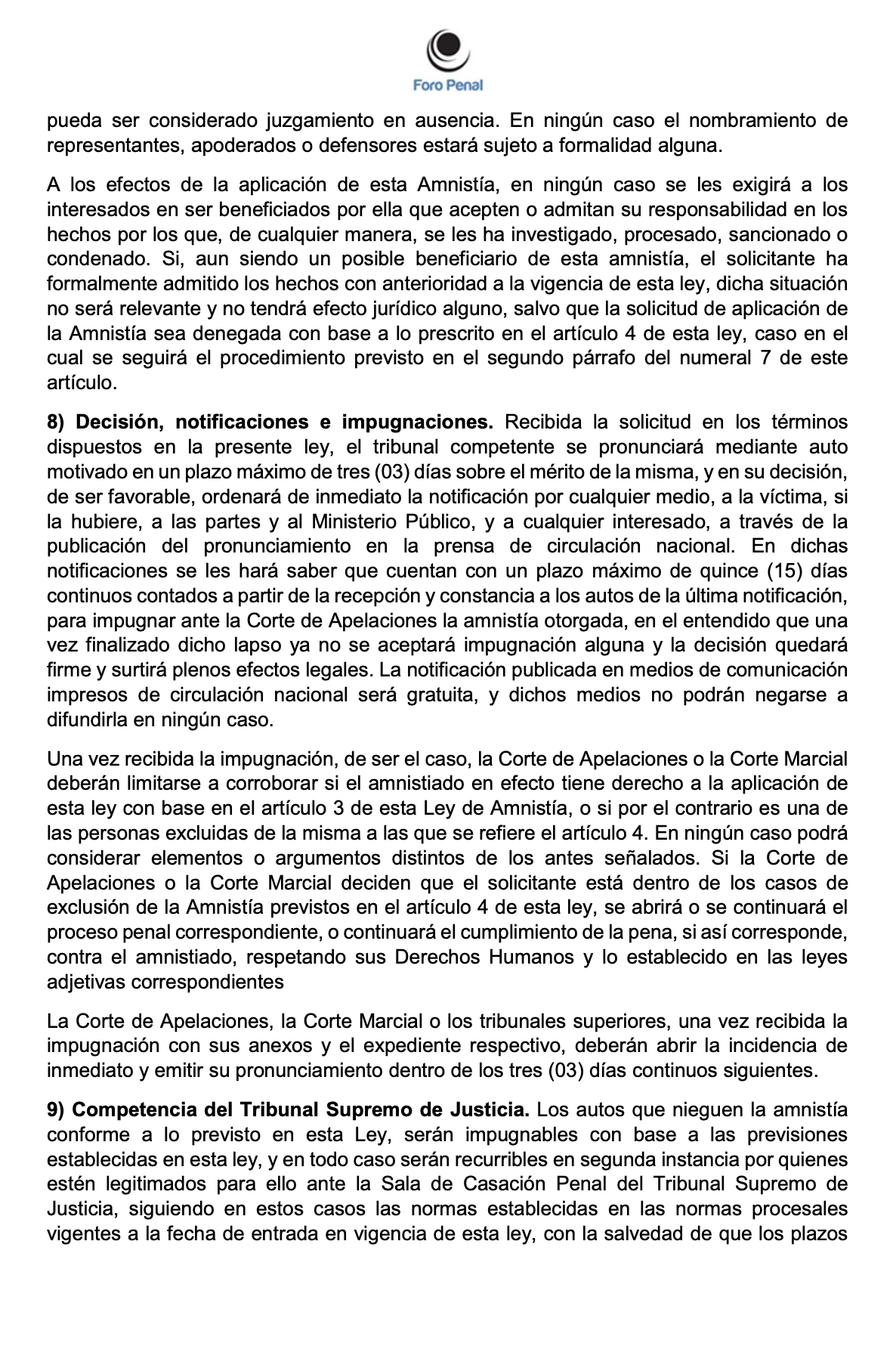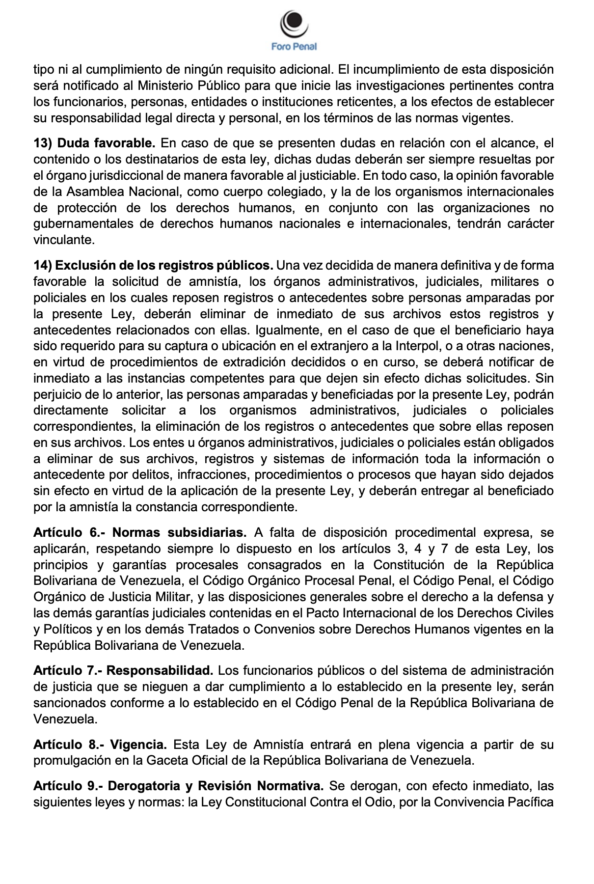 ANTEPROYECTO DE LEY DE AMNISTÍA GENERAL DE FORO PENAL - Enero 2026