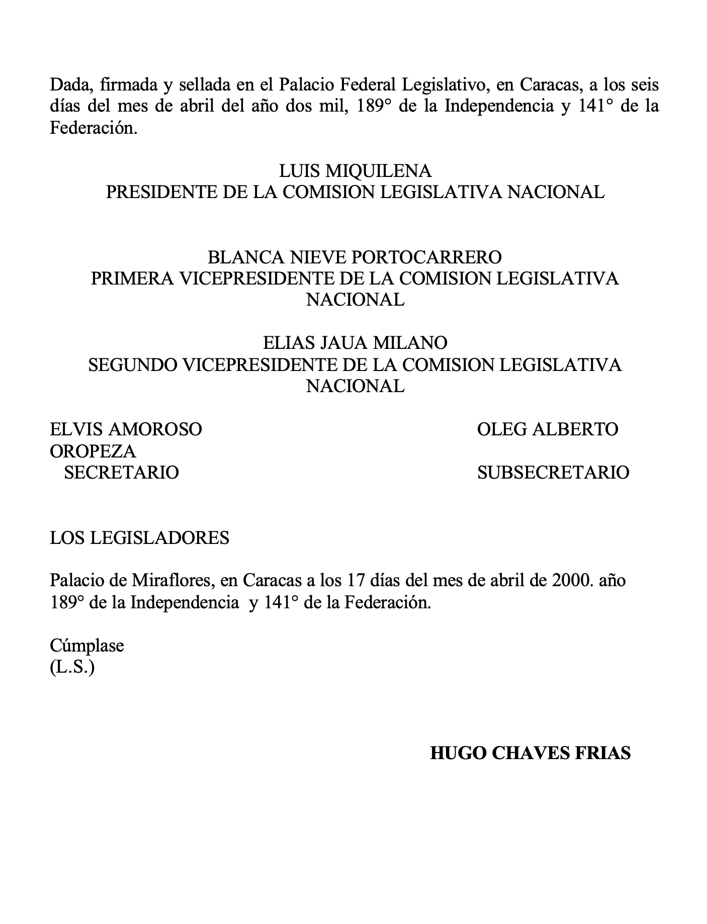GACETA OFICIAL DE LA REPUBLICA BOLIVARIANA DE VENEZUELA Caracas, lunes 17 de Abril de 2000 Nº 36.934
