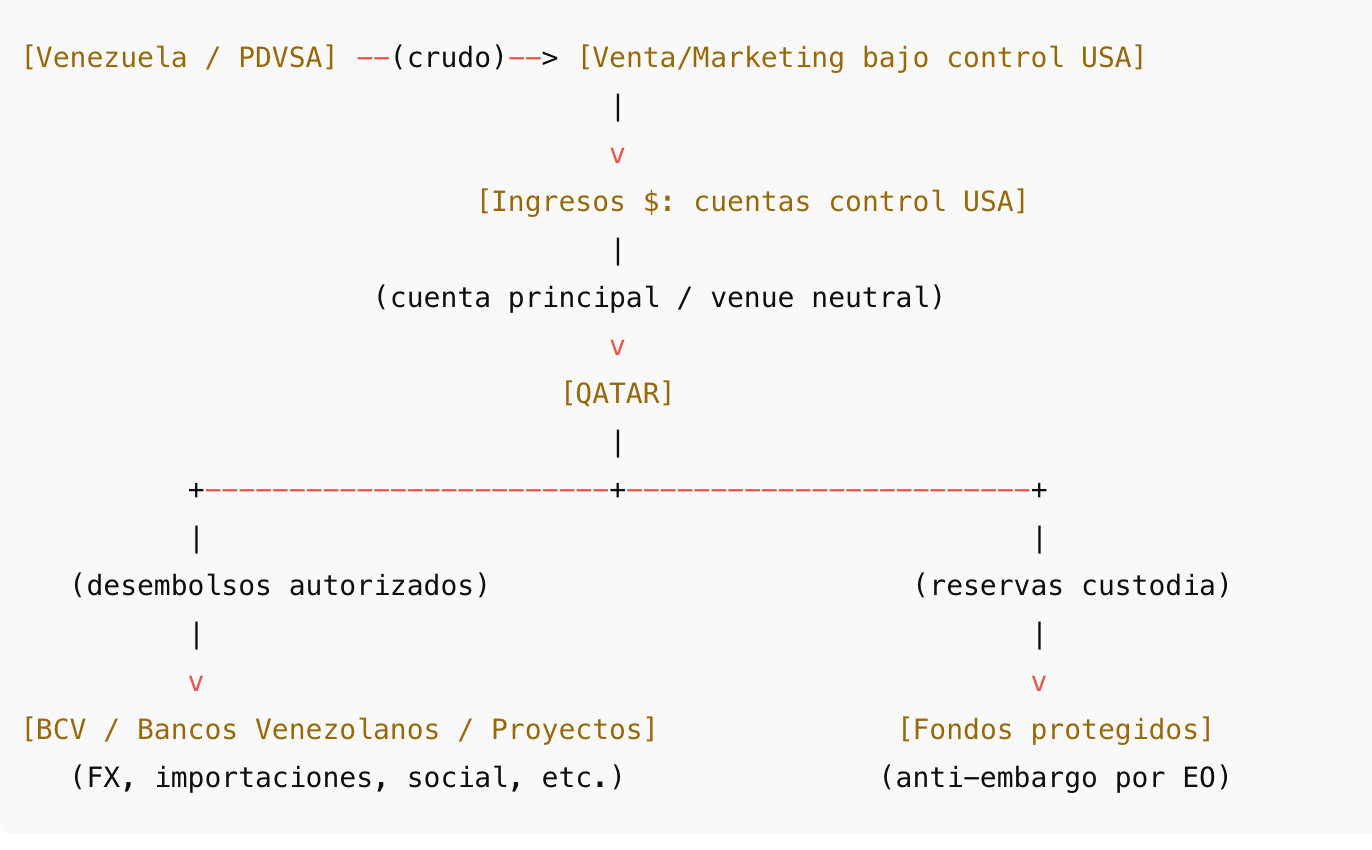 - Los ingresos quedan en cuentas “controladas por el gobierno de EE. UU.” y la cuenta principal estaría en Qatar como “venue neutral” para mover fondos con aprobación y reducir riesgo de embargo por acreedores.